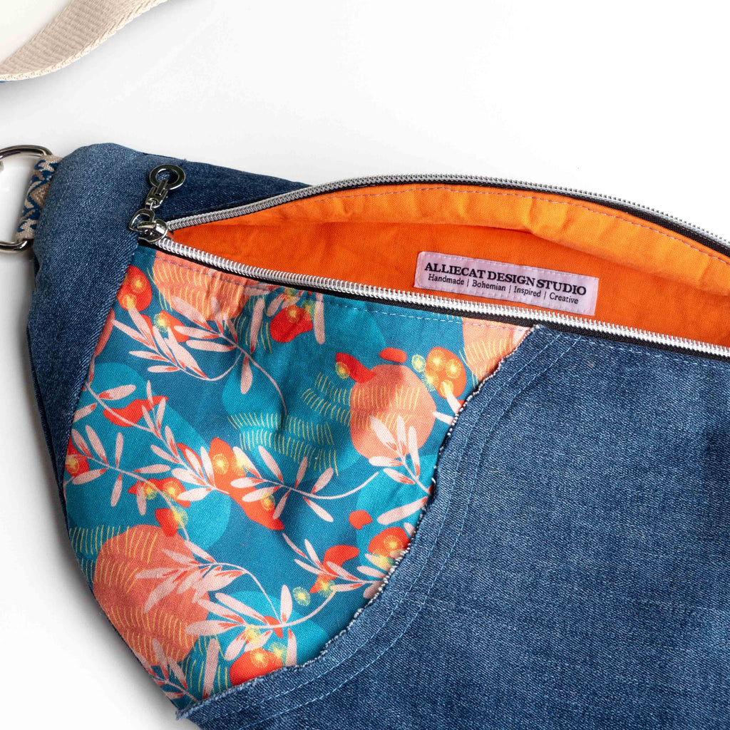 Blue Orange Floral Millie Recycled Cross Body Sling Bum Bag NEW