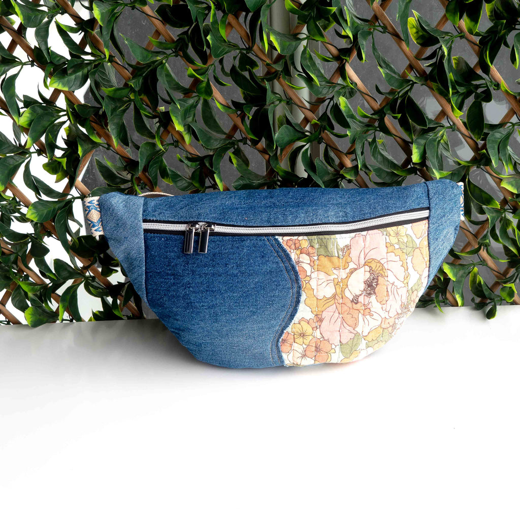 Pink Apricot Quilted Flowers Recycled Cross Body Sling Bum Bag NEW